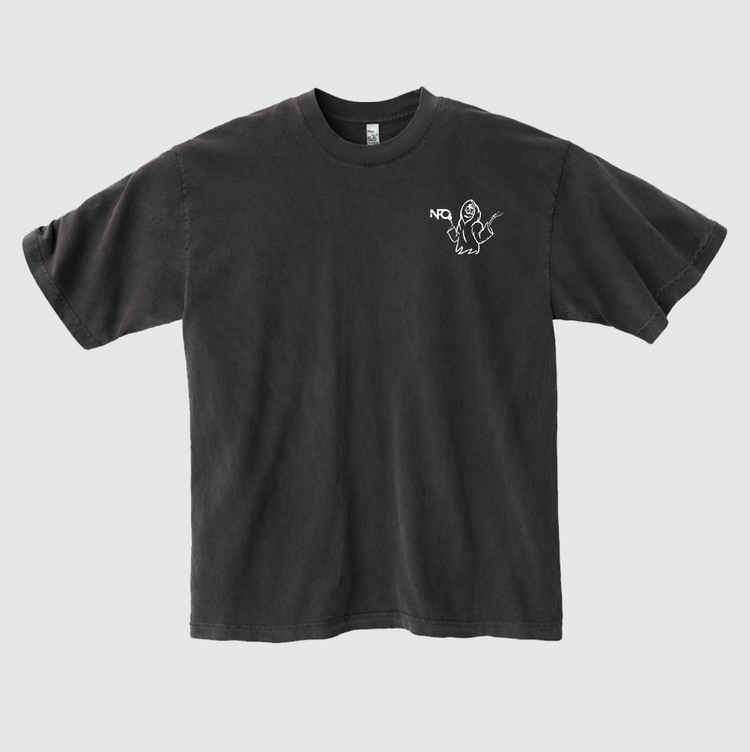 An oversized, boxy shirt t-shirt with a high neck and heavyweight touch. A throwback look paired with NFQ's tone & mission.